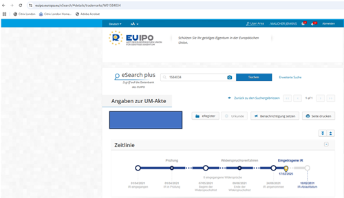 Im Register des EUIPO unter eSearch plus sieht das so aus: