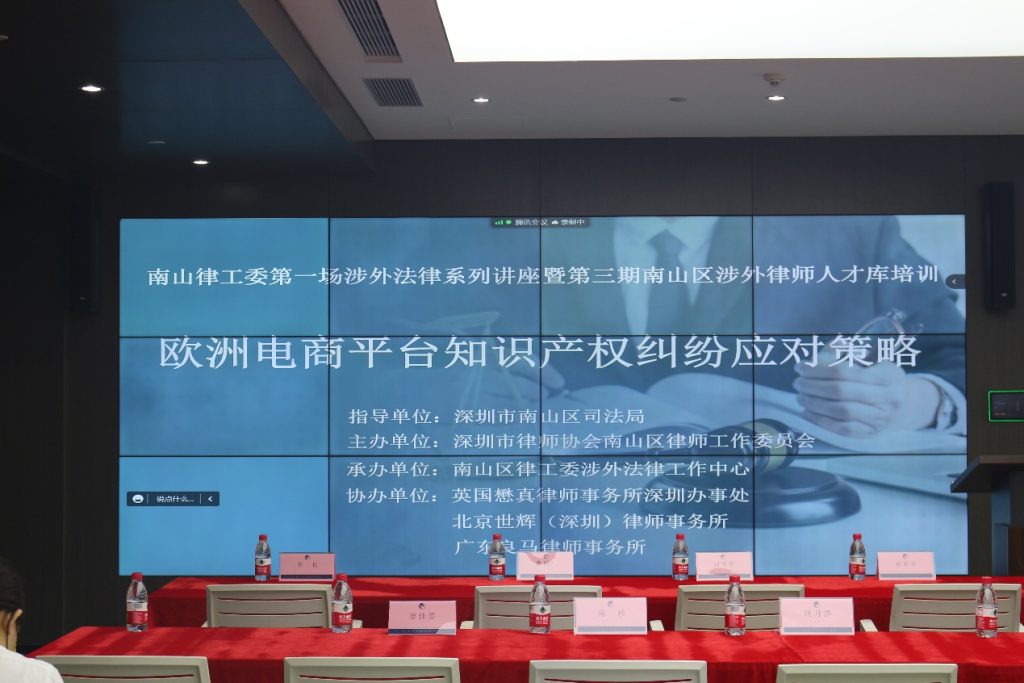 On 28 October 2022, Nanshan District Lawyers Work Committee under Shenzhen Lawyers Association hosted a seminar on “European IP protection on e-commerce platforms” at Guandong Liangma Law Firm, in Shenzhen city, China.