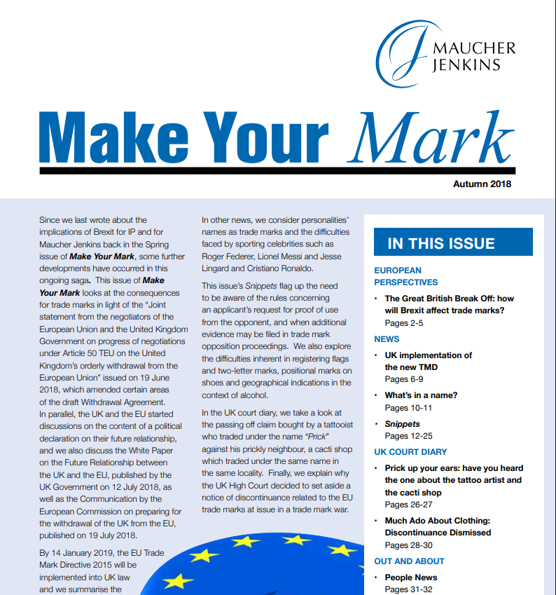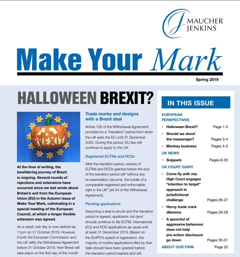Make Your Mark Spring 2019 including case law, Brexit advice and more. All articles published here are also available to read on our News and Events pages.